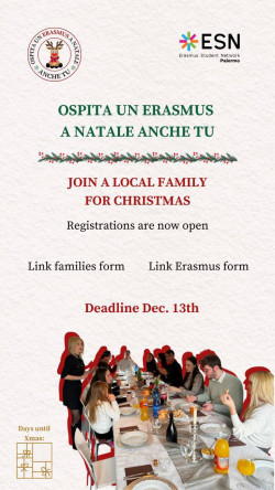 "The Christmas holidays are a time of sharing, love and acceptance and for this reason, ESN organises the project ""Ospita un Erasmus a Natale anche tu"" [aka Join a Local family for Christmas].